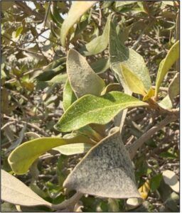 Figure 1: Crystallized salt deposits seen on the leaf surface (Terra Nexus, 2025)